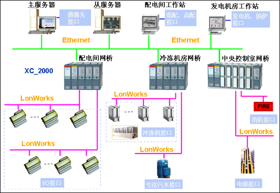 監控冷水機組系統、熱水鍋爐監控系統、屋頂熱泵機組系統、空調系統、照明系統、給排水系統、變配電監測系統等。